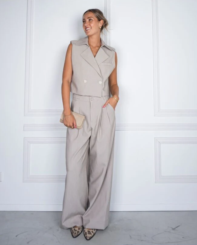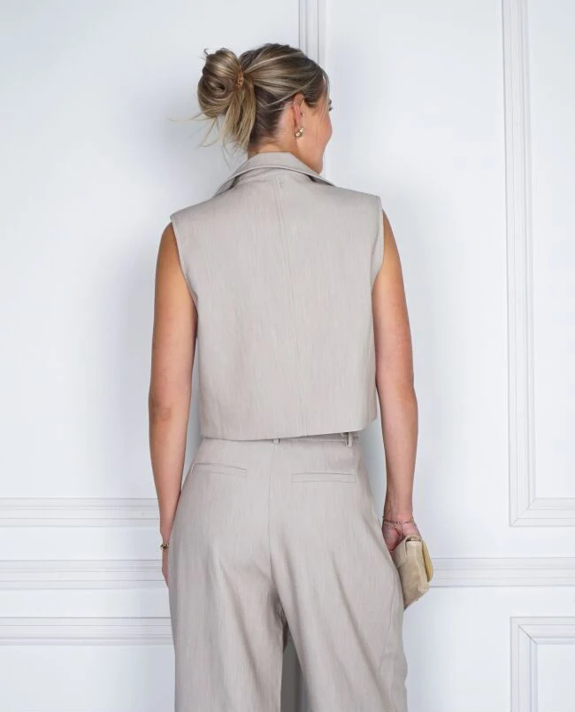 Custom OEM Women's Tailored Beige Gilet Polyester-Viscose-Spandex Blend Vest for Sophisticated Business & Casual Wear Waistcoat